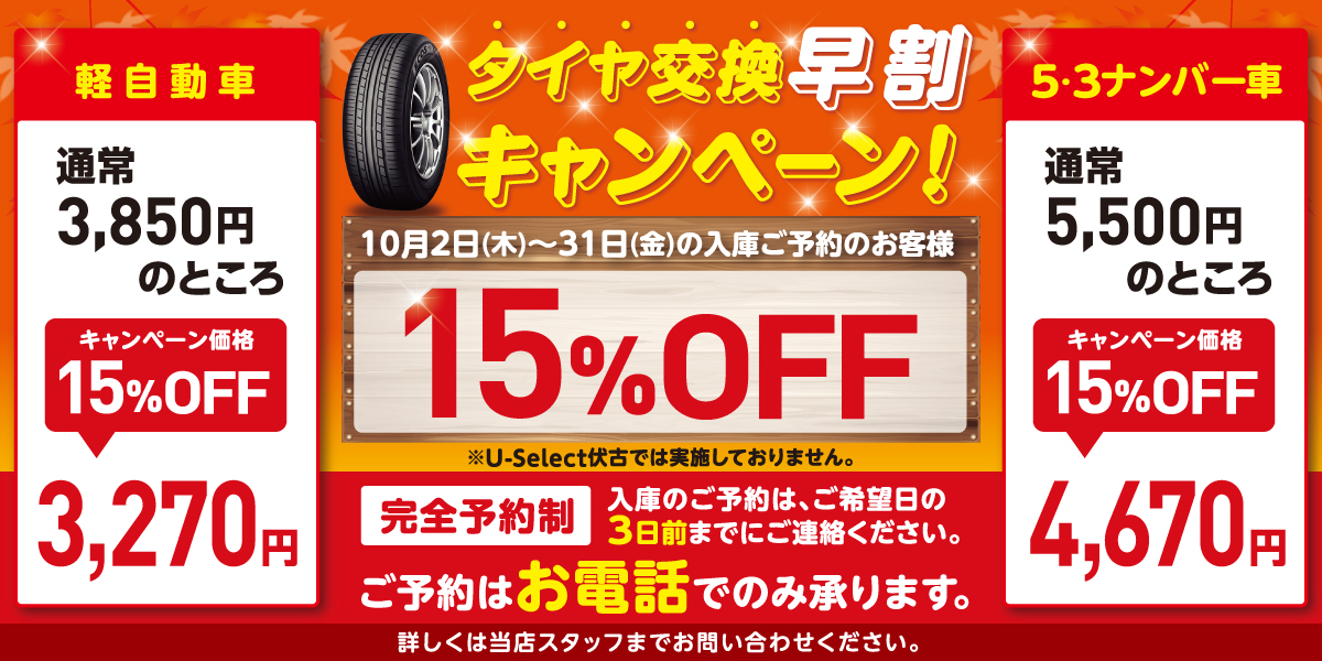 2025年10月2日(木)~2025年10月31日(金)の入庫ご予約をお電話でいただいたお客様限定