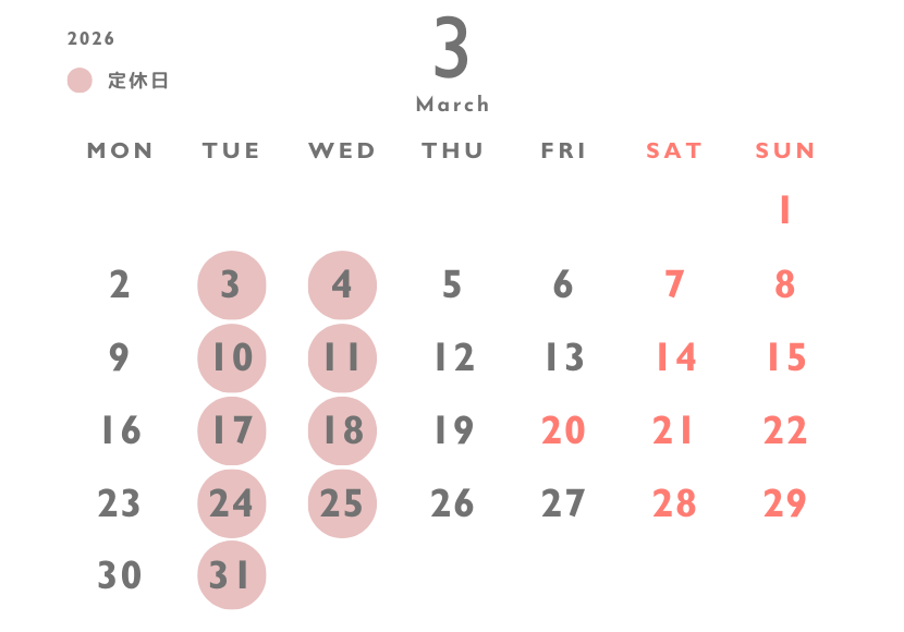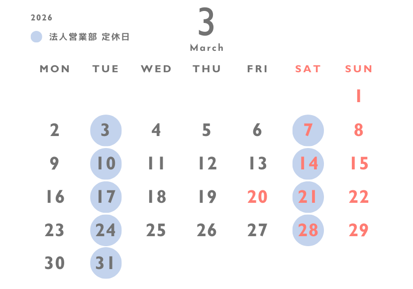 3月 営業日カレンダー