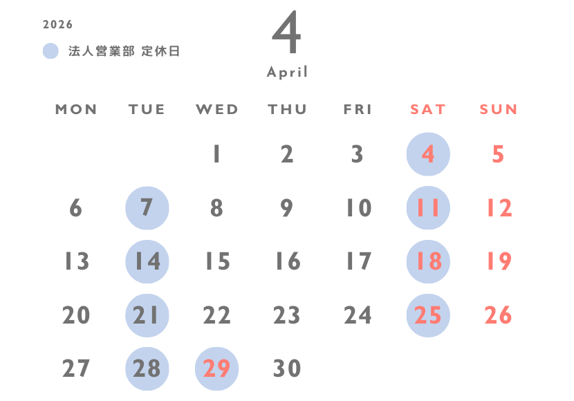 4月 営業日カレンダー